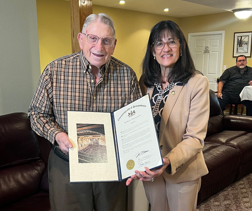 Last week, Rep. Jill Cooper (R-Westmoreland) joined the Sartori family to celebrate the 97th birthday of the Delmont family’s patriarch, Gildo. Born in Claridge, Westmoreland County, in 1927, Sartori served in the U.S. Armed Forces during World War II and has four children, six grandchildren, three step grandchildren and six great-grandchildren. As part of the celebration, Cooper presented Sartori with a House of Representatives citation and a U.S. flag that has been flown over the state capitol.